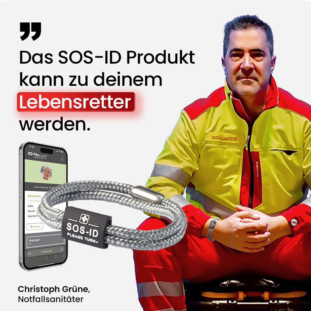 Sorgenfrei unterwegs mit dem Bestseller Set: Armband, Label und Notfallkarte. Alle wichtigen SOS-ID Produkte in einem Set. Im Notfall nie wieder allein, denn dieses Set kann Leben retten. Kinderleicht einzurichten mit zertifiziertem Datenschutz. Ein Lebensretter für jede Situation.
